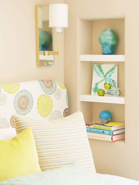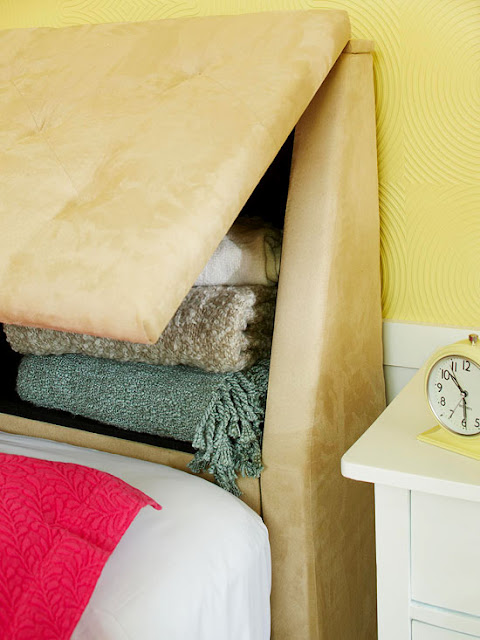 שימו לב לרעיון הנפלא של יצירת אחסון בגב המיטה. כל כך חכם, לא תופס מקום, ומייצר כמות אחסון מכובדת.