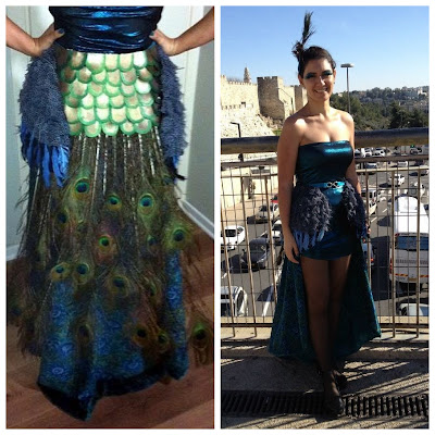 | תחפושת מרהיבה של טווס תוצרת בית. ליטל ללזרי
