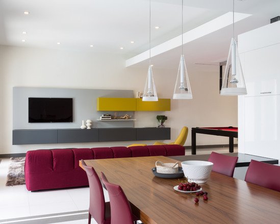 אינכם מעוניינים לצבוע את כל הקיר?  מלבן צבעוני במרכז ולאורך הקיר מאחורי הטלוויזיה יעניק מסגרת נפלאה למלבן השחור. טיפ שיסייע לכם  לבחור את הגוון הנכון-דיגמו צבע מהכרית שעל הספה או מהתמונה שעל הקיר. כך תיצרו הרמוניית צבעים נכונה.