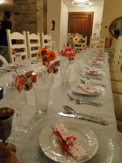 ערב החג היה שמח ומשפחתי. התענגנו על המטעמים, על ההומור המשפחתי הפנימי ועל הביחד, ישובים סביב שולחן החג הצבעוני שעיצבתי השנה.